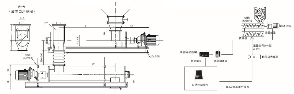 出料口上方設(shè)溢流孔,便于維護(hù)、標(biāo)定 |